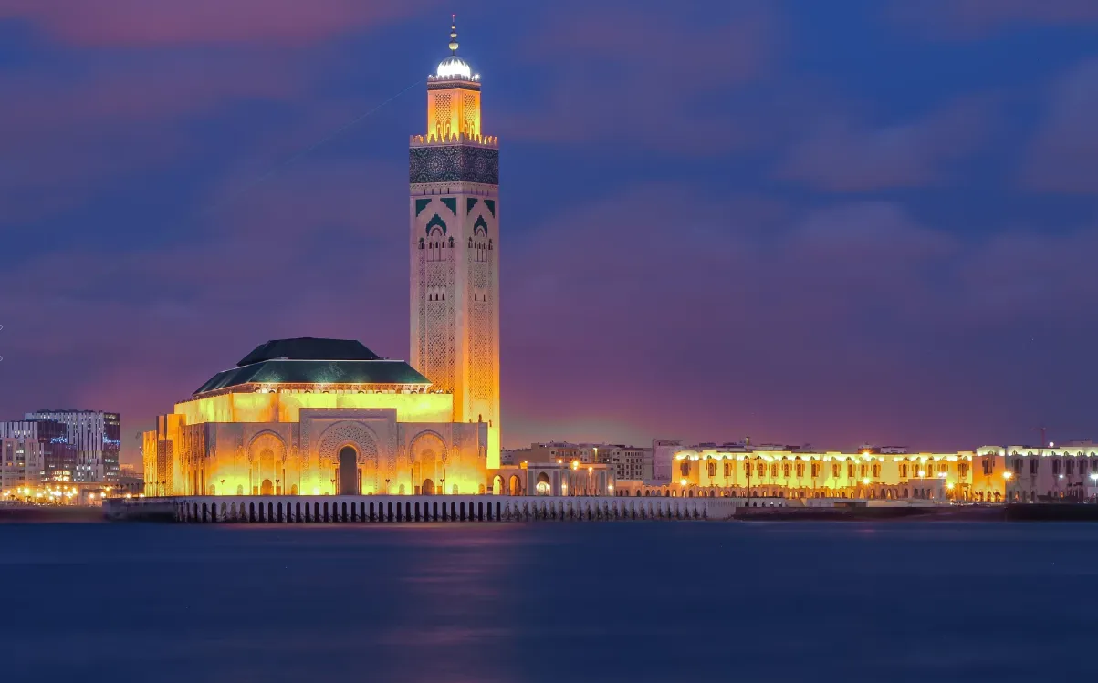 Lasciandoci Marrakech alle spalle, prenderemo l’autostrada fino a Casablanca, dove visiteremo la spettacolare Moschea di Hassan II. Continueremo fino a Rabat, capitale del Marocco, dove visiteremo Méchouar (le rampe e le mura che circondano il Palazzo Reale), la Kasbah degli Oudaya e il magnifico mausoleo di Mohamed V e Hassan II. Pernotteremo a Rabat.