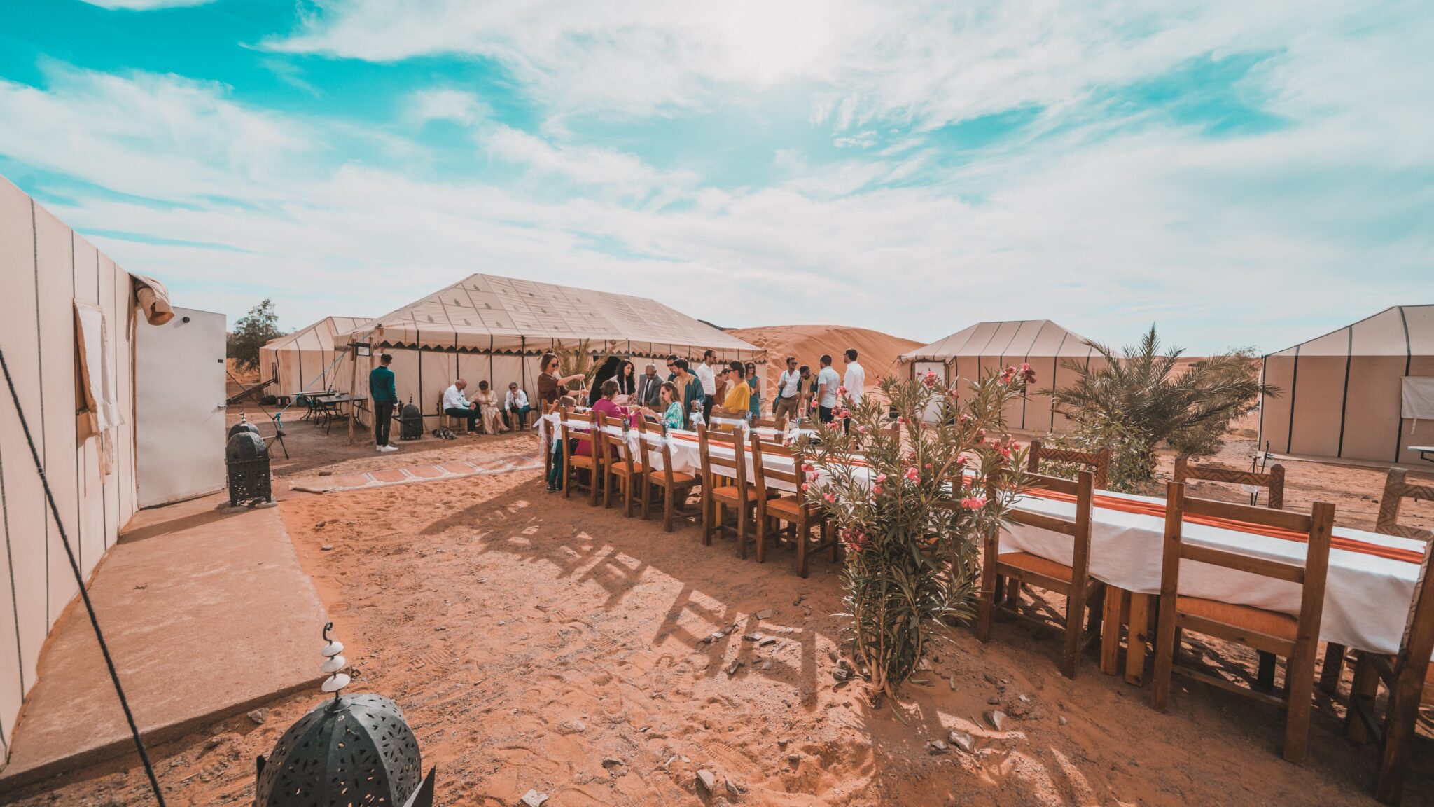 Chegada ao acampamento berbere no deserto, onde seremos recebidos com um chá de menta de boas-vindas. Teremos tempo livre para descansar antes do jantar.