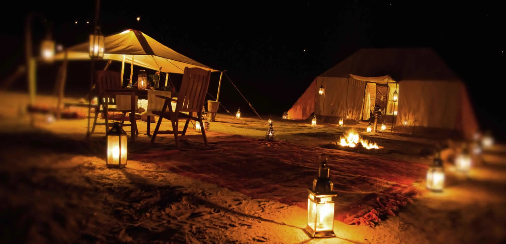 e ir em camelos até acampamentos, poderão contemplar o imenso céu estrelado e dormir em tendas nómadas, desfrutando da música dos tambores, do jantar e do chá marroquino, numa noite no deserto.