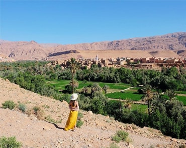 Después del desayuno en el hotel conduciremos a través del Valle del Dades hacia Kalaa M’gouna y Ouarzazate. La ruta por el valle del Dades es la manera de las Mil Kasbahs – ofrece numerosas oportunidades para tomar algunas de sus mejores tomas fotográficas del viaje. Nos detendremos en Kalaa Mgouna, «la ciudad rosa», para comprar el agua de rosas, lo que hará tu olor lino bien mucho tiempo después de su viaje. Continuando hacia Skoura y el valle de dirds visitará la Kasbah Ameridil, una kasbah conservados en esta área. Después de algunas excursiones en el valle es almuerzo en un restaurante con vistas a todo el valle. El recorrido continúa hacia Ouarzazate, «el Hollywood de África», cuya geografía y hermosos paisajes ha atraído a muchos productores de películas de clase mundial. Aquí usted puede optar por visitar los estudios, que contengan objetos utilizados en las películas, usted pudo haber visto ya, como la momia, Gladiator y la última tentación de Cristo. Será un alojamiento en un Riad local.